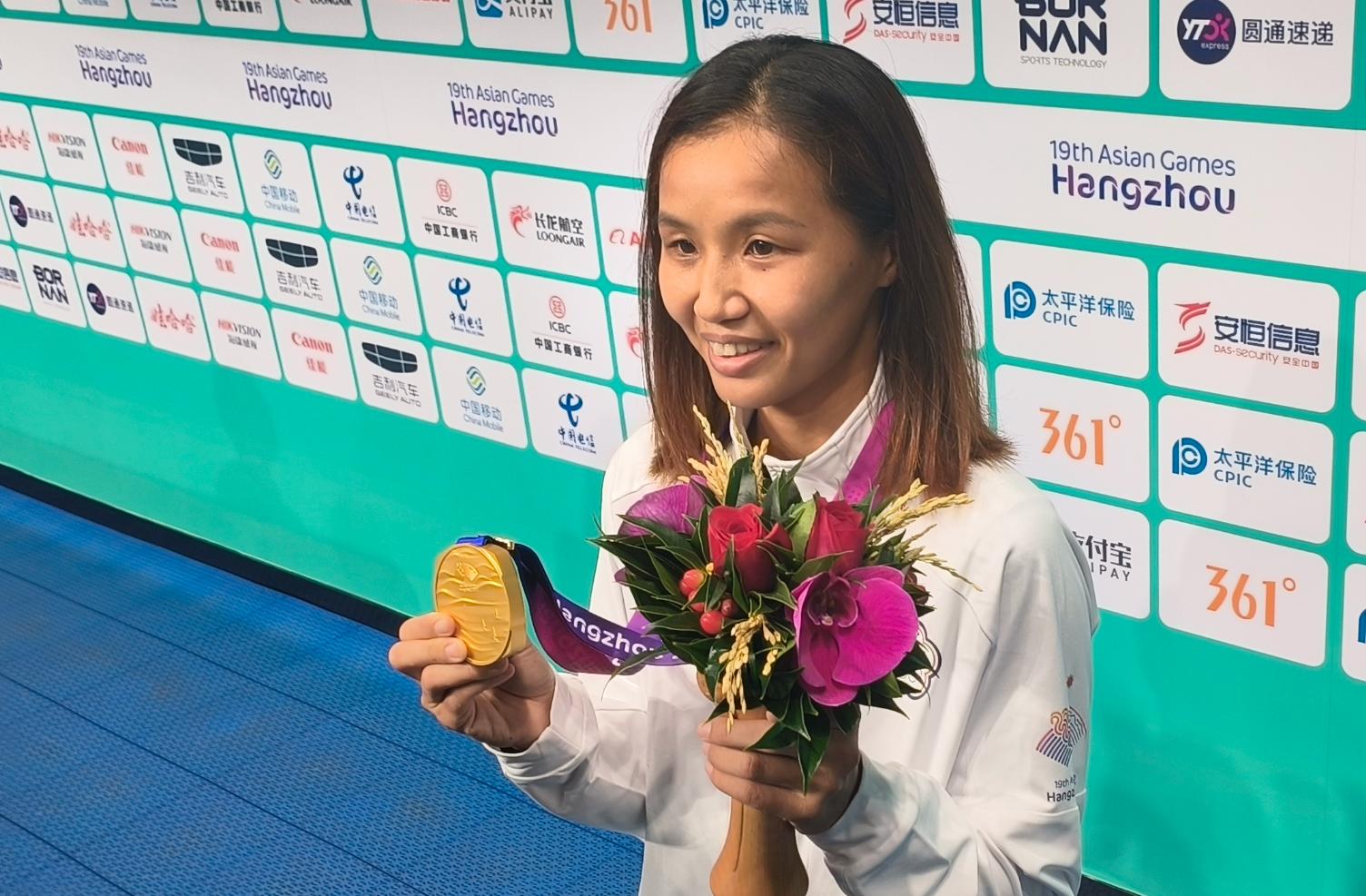 这也是中国女子举重队在杭州亚运会获得的第一枚金牌