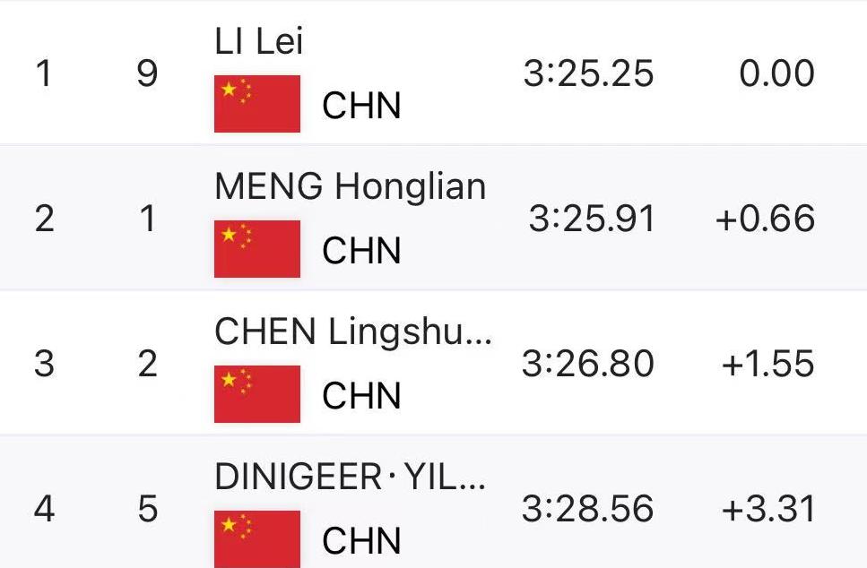中国选手包揽速度滑冰女子1000米金银牌。