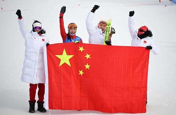 越野滑雪女子4×5公里接力中国队收获金牌。