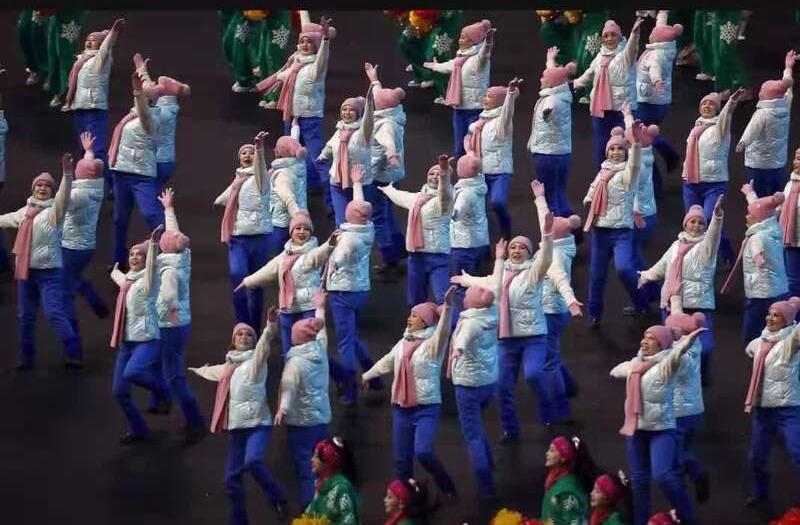 北京冬残奥会开幕式上,四个雪融容划出欢迎字样,运动员入场。