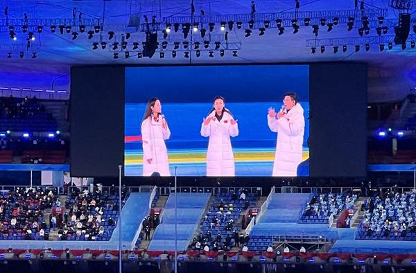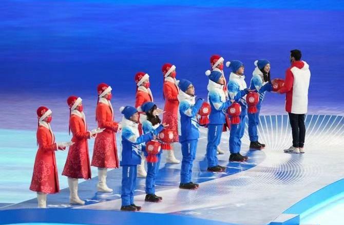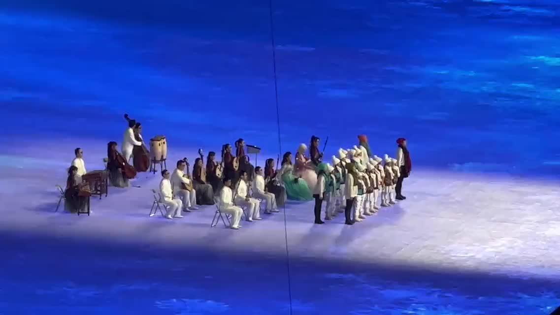 3月4日晚,北京,国家体育场鸟巢馆,北京2022年冬残奥会开幕前,来自盲校的孩子们演唱《让我们荡起双桨》。