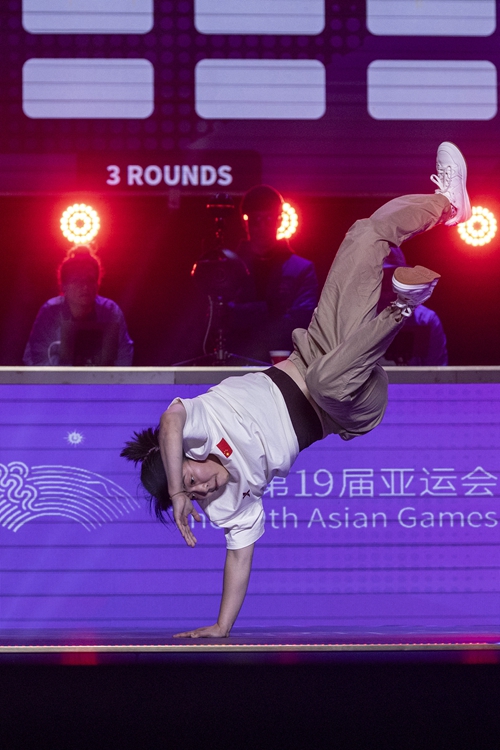 10月7日,杭州亚运会霹雳舞女子组决赛,刘清漪夺冠。视觉中国供图
