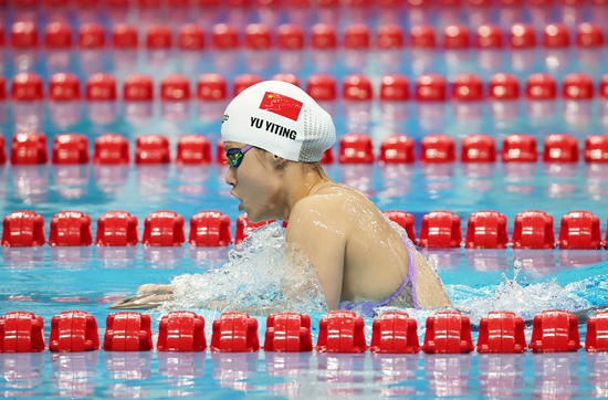 9月27日,杭州亚运会女子400米混合泳决赛,余依婷夺冠。视觉中国供图