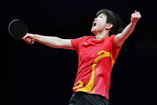 10月1日,杭州亚运会乒乓球女单决赛,孙颖莎夺冠。视觉中国供图