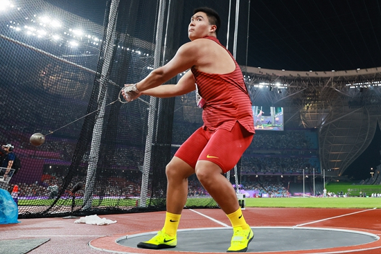 9月30日,杭州第19届亚运会田径男子链球比赛,中国选手王琦夺得金牌。视觉中国供图