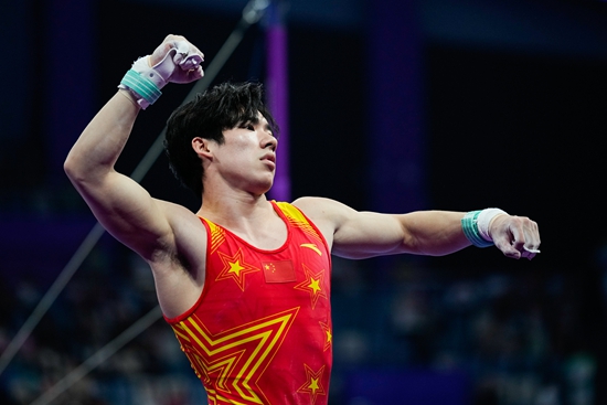 9月26日,杭州亚运会竞技体操男子全能决赛,张博恒夺冠。视觉中国供图