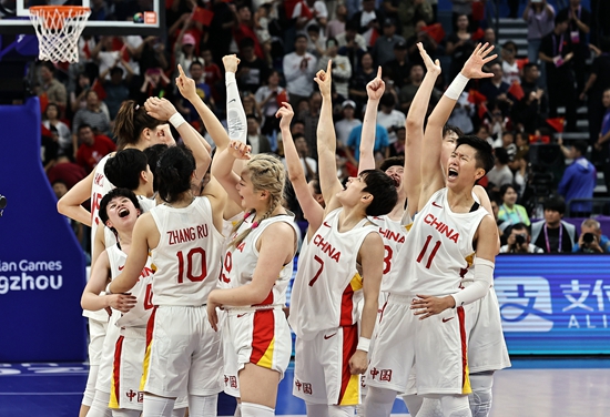 10月5日,杭州亚运会女篮决赛,中国女篮74∶72日本女篮成功卫冕。视觉中国供图