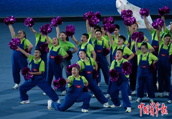 10月25日晚,弯湾啦啦队把《弯湾向阳花开》跳到了杭州奥体中心游泳馆的蓝色舞台上。表演时,他们的动作更用力,笑得更灿烂了,从他们的脸上,能看到满满的希望与活力。