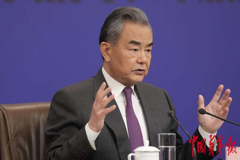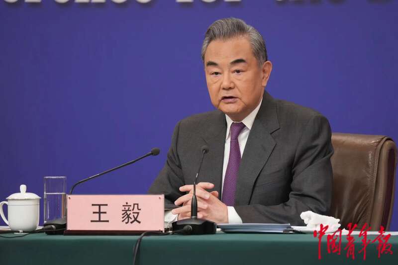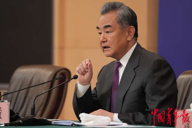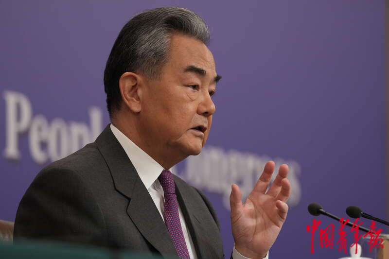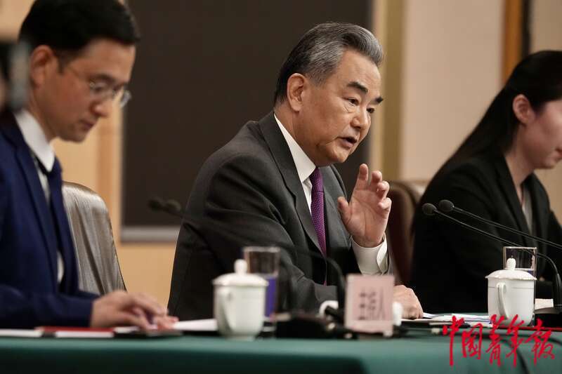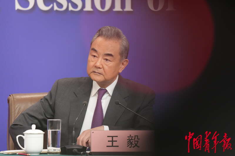 3月7日上午,北京梅地亚中心,十四届全国人大二次会议举行外交主题记者会,中共中央政治局委员、外交部部长王毅回答台海相关问题。中青报·中青网 李隽辉/摄