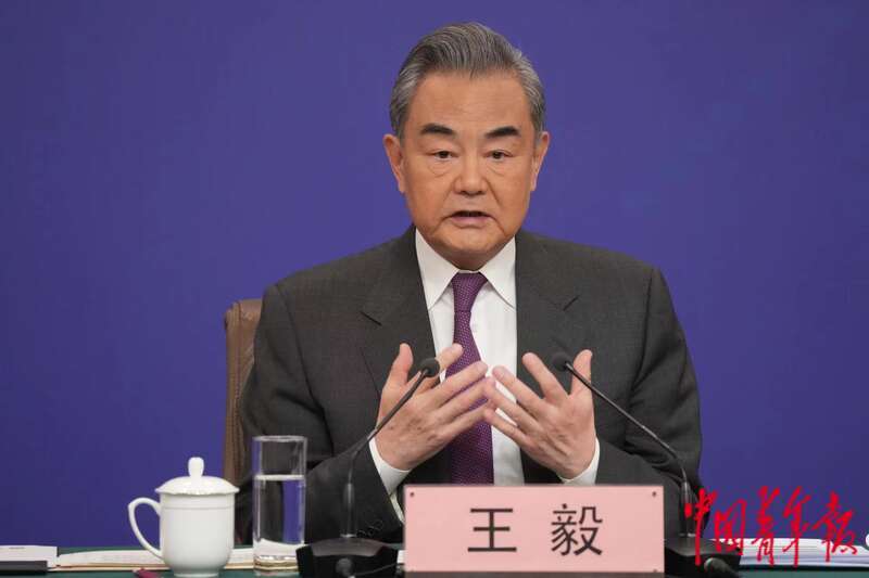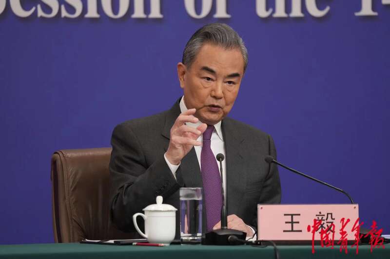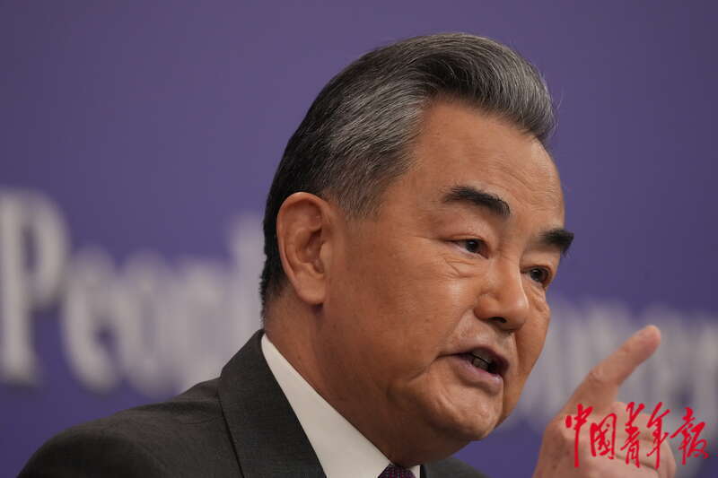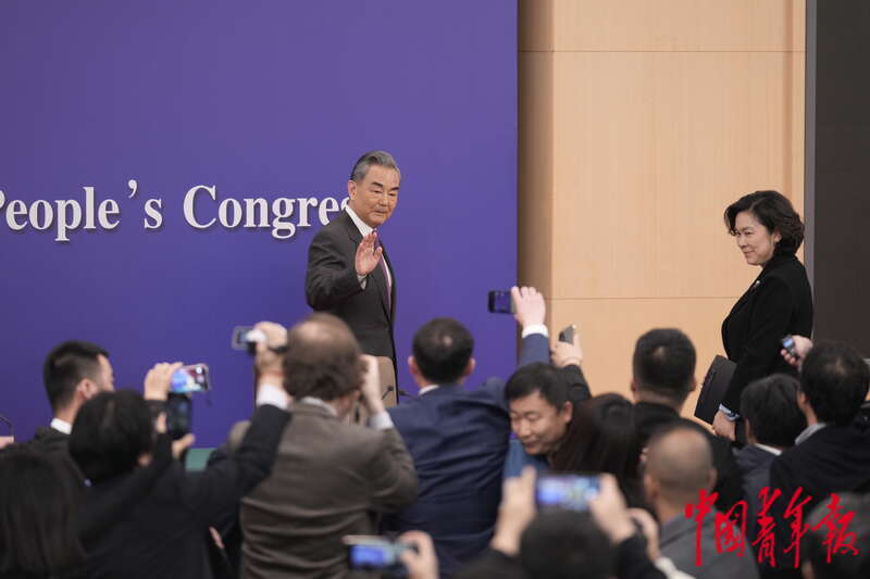 3月7日上午,北京梅地亚中心,十四届全国人大二次会议举行外交主题记者会,中共中央政治局委员、外交部部长王毅就“中国外交政策和对外关系”相关问题回答中外记者提问。 中青报·中青网记者 李隽辉/摄