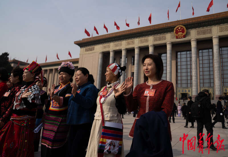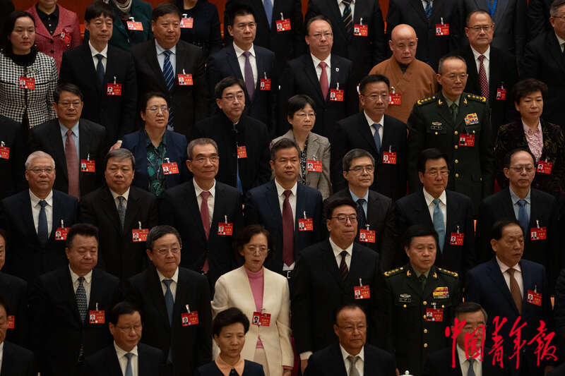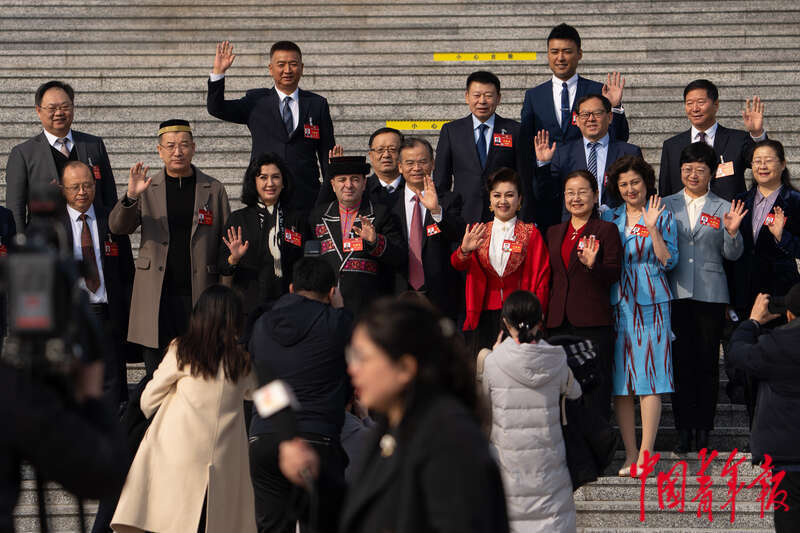 3月10日上午,北京,人民大会堂,全国政协十四届二次会议闭幕会结束后,参会委员在人民大会堂门前合影留念。中青报·中青网记者 李峥苨/摄
