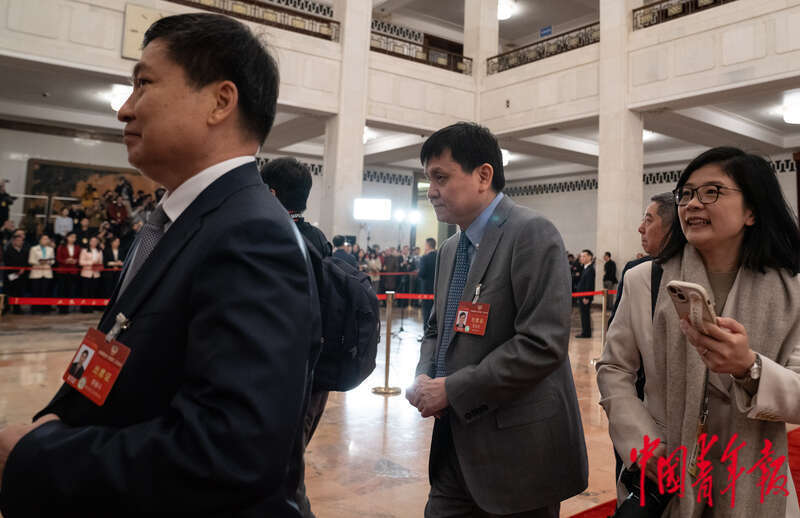 3月10日上午,北京,人民大会堂,全国政协十四届二次会议举行闭幕会,会前,全国政协委员、国家传染病医学中心主任、复旦大学附属华山医院感染科主任张文宏等参会委员走向会场,一旁正在进行全国政协十四届二次会议第三场“委员通道”。今年全国“两会”,张文宏就缓解秋冬春呼吸道传染病高发难题,提出探索呼吸道疾病医防融合新型健康管理模式的建议,“不能让老百姓对基层医疗失去信心。”中青报·中青网记者 李峥苨/摄
