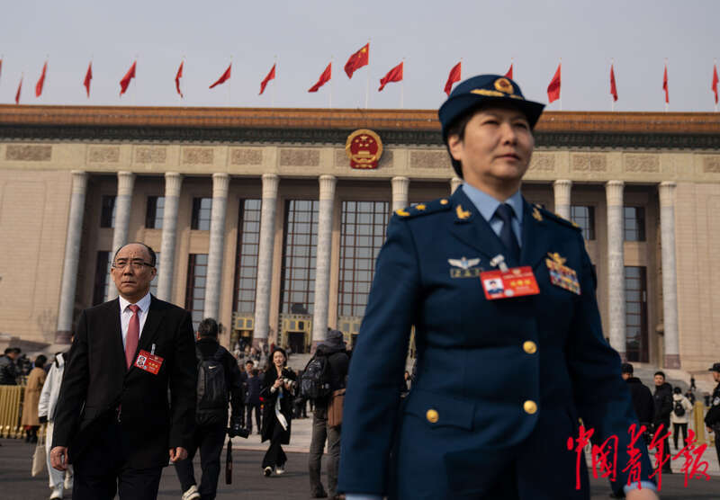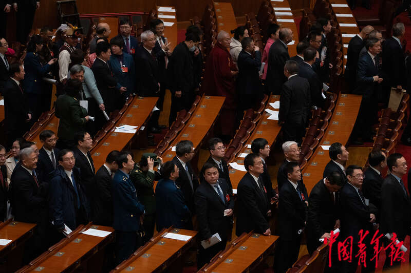 3月10日上午,北京,人民大会堂,全国政协十四届二次会议举行闭幕会,会后参会委员退场。中青报·中青网记者 李峥苨/摄