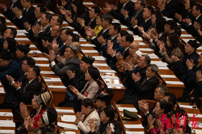 3月10日上午,北京,人民大会堂,全国政协十四届二次会议举行闭幕会,参会委员鼓掌。当日的闭幕会通过了政协第十四届全国委员会第二次会议关于常务委员会工作报告的决议、政协第十四届全国委员会第二次会议关于政协十四届一次会议以来提案工作情况报告的决议、政协第十四届全国委员会提案委员会关于政协十四届二次会议提案审查情况的报告,以及政协第十四届全国委员会第二次会议政治决议。中青报·中青网记者 李峥苨/摄