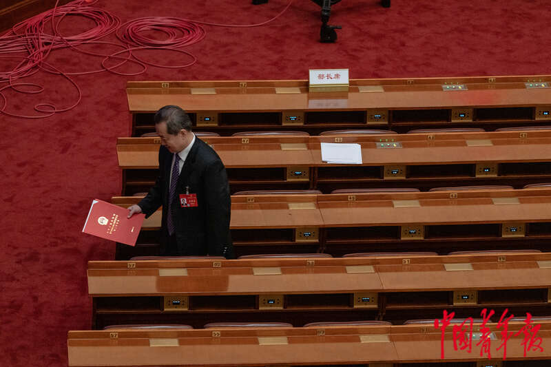 3月11日下午,北京,十四届全国人大二次会议在人民大会堂举行闭幕会,会议表决通过了新修订的国务院组织法。中青报·中青网记者 李隽辉/摄