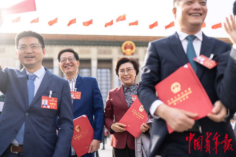 3月11日下午,北京,十四届全国人大二次会议在人民大会堂举行闭幕会,会议开始前,代表们步入会场。中青报·中青网记者 李隽辉/摄
