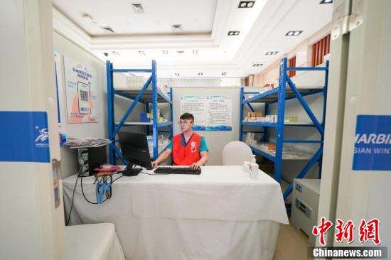 哈尔滨亚冬会冰上项目运动员村,医护人员在医疗诊所药房内工作。