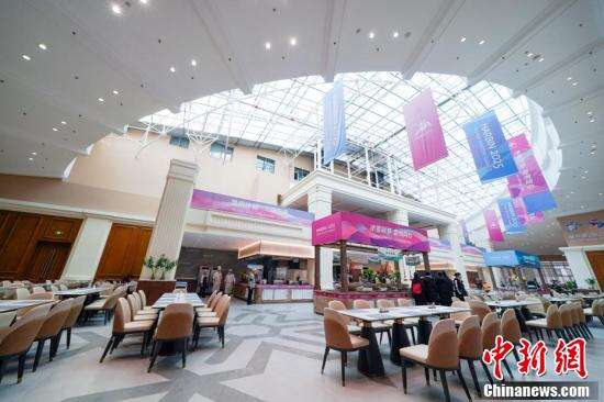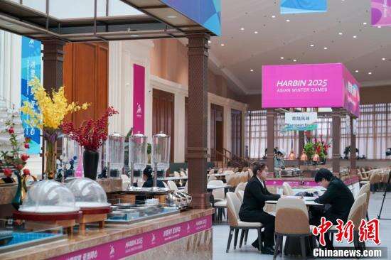 1月25日,哈尔滨亚冬会冰上项目运动员村运动员餐厅。华旗饭店作为2025年亚冬会冰上项目主运动员村共计41层建筑,625间客房,餐饮包房12间,1个自助餐厅,将于1月27日预开村。赛会期间主要为运动员及随队官员提供居住、办公、商业、医疗、餐饮、休闲等服务保障,也是各地区代表团团长会议所在地和各类文化活动的场所。