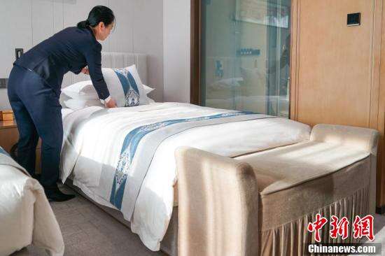 哈尔滨亚冬会冰上项目运动员村,客房经理整理加长床。
