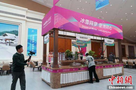 哈尔滨亚冬会冰上项目运动员村,特色运动员餐厅吸引媒体拍照。