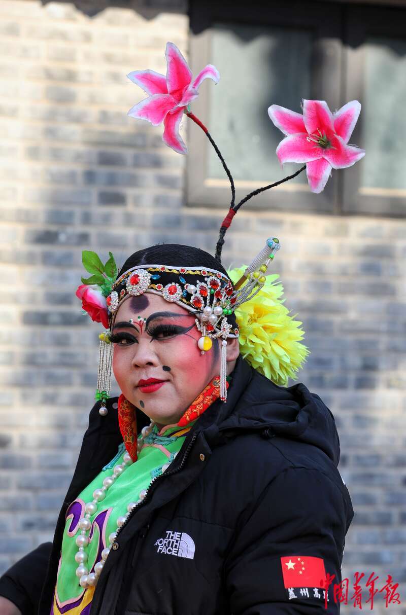 1月29日(正月初一),北京,第三十九届龙潭春节文化庙会,台下刚刚装扮好的演员。中青报·中青网记者 李建泉/摄