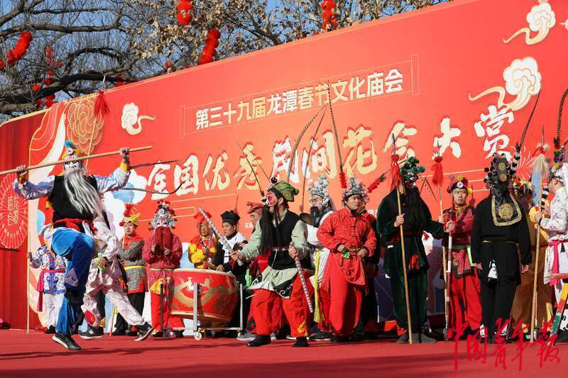 1月29日(正月初一),北京,第三十九届龙潭春节文化庙会,舞台上来自全国各地的特色花会表演,吸引了许多市民游客观看。中青报·中青网记者 李建泉/摄