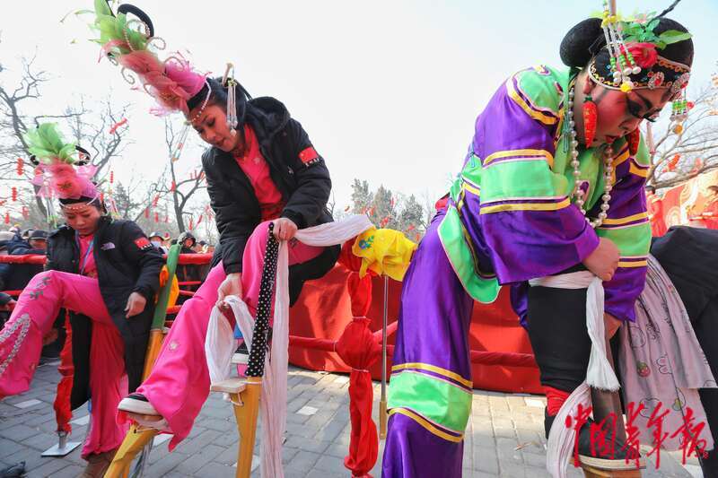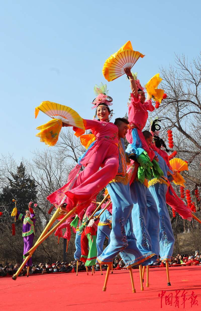 1月29日(正月初一),北京,第三十九届龙潭春节文化庙会上的踩高跷表演。中青报·中青网记者 李建泉/摄