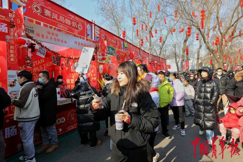 1月29日(正月初一),北京,第三十九届龙潭春节文化庙会上,热闹的小吃街一大早就迎来了大量市民和游客。中青报·中青网记者 李建泉/摄