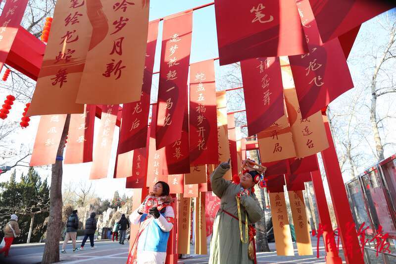2025年乙巳蛇年春节是“春节——中国人庆祝传统新年的社会实践”被列入联合国教科文组织人类非物质文化遗产代表作名录后的首个春节。第三十九届龙潭春节文化庙会以“都城万象焕新颜 京华春意乐大年”为主题,游客通过观看楹联文化、国家级非物质文化遗产花脸社火等民间花会表演等,感受民族传统文化,过中国春节。
