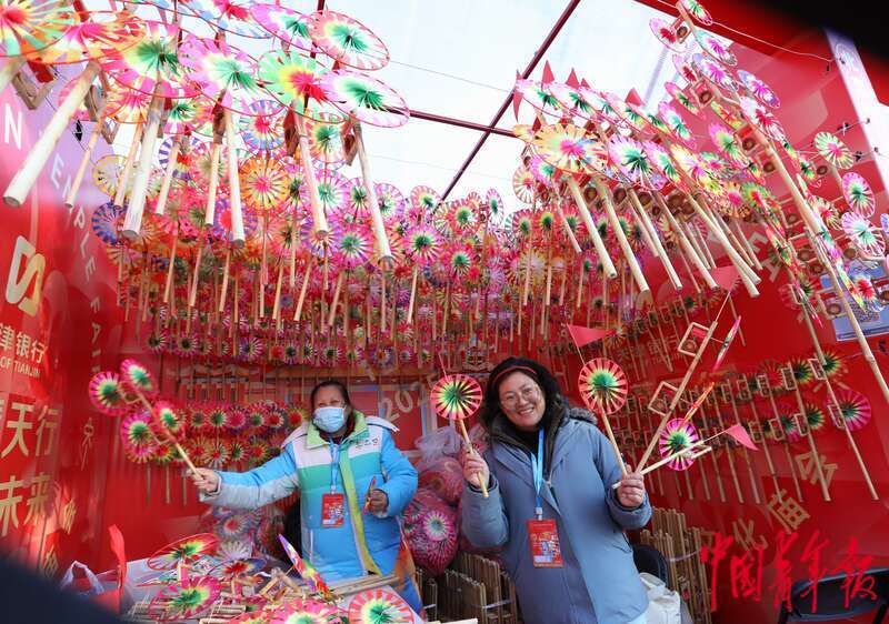 1月29日(正月初一),北京,第三十九届龙潭春节文化庙会上,传统的风车深受游客的喜爱,每年庙会上都给人们带来欢乐。中青报·中青网记者 李建泉/摄