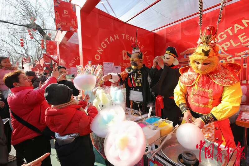 1月29日(正月初一),北京,第三十九届龙潭春节文化庙会上,具有特色的扮相让这个摊位前挤满了市民和游客,生意十分兴隆。中青报·中青网记者 李建泉/摄