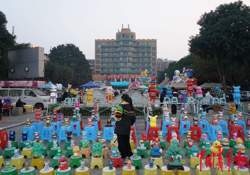 1月29日,重庆江津,一个套圈摊摆在镇政府门前的滨江公园里。近来,安徽省绩溪县县政府门口存在多年的“民生夜市”等曾引发广泛关注。据报道,为方便群众假期出行,我国多地发布了政府机关等单位在春节期间开放停车位供市民免费停车的消息。中青报·中青网记者 李强/摄