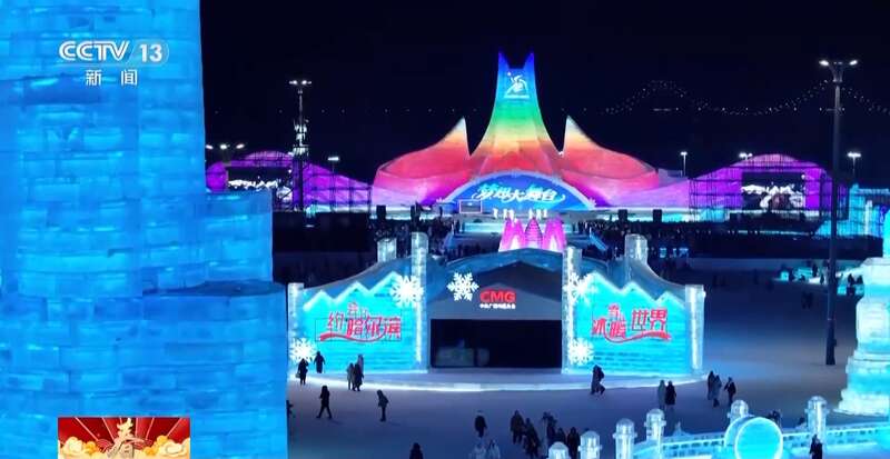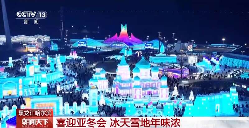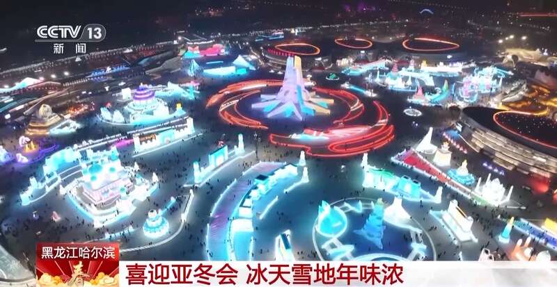 总台记者 任秋宇:不仅亚冬会氛围浓厚,园区当中也是年味十足,您看春节期间,哈尔滨冰雪大世界又上新了一些春节的冰雕。