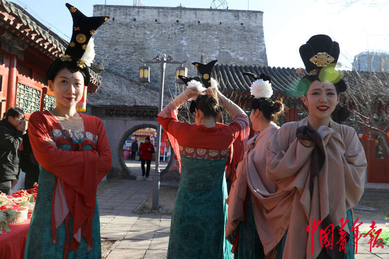 2月3日,北京古观象台,演员们候场准备进行“鞭打春牛”的传统仪式。中青报·中青网记者 陈剑/摄