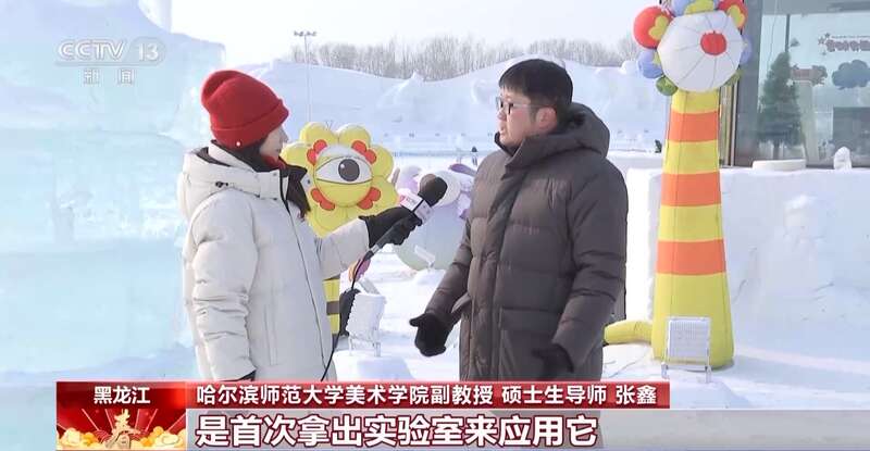 东北林业大学材料科学与工程学院教授、博士生导师 陈文帅:我们加入一些环境友好型的、植物级的分子,帮助这些色素在冰中非常好地分散,才达到目前我们这种效果。整个过程体系是绿色的、可持续的,这是我们一个最核心的理念,我们开发的这些试剂是环境友好的,当春暖花开的时候冰融化掉,它会变成营养物质沉积到土壤里,滋生花草的生长。