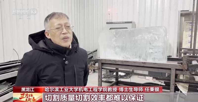 哈尔滨工业大学机电工程学院教授、博士生导师 任秉银:这么多年来建冰雕设施用的冰一直都是人工在切,使用手工锯,切割质量切割效率都难以保证。在这种情况下,对智能自动化生产标准冰砌块的需求十分迫切。