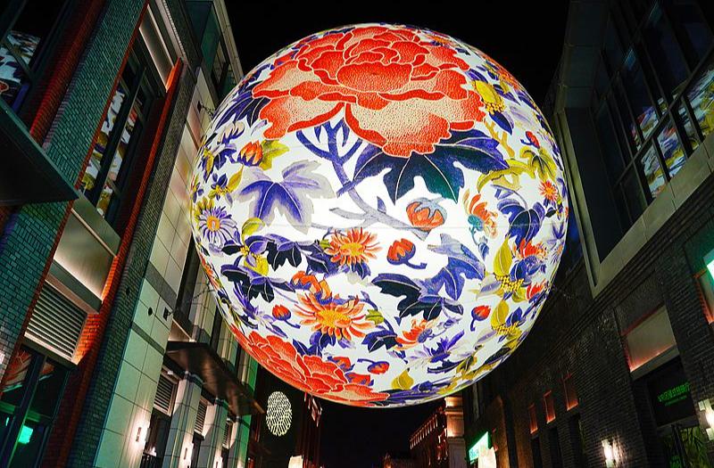 北京坊百年灯街盛景重现 球形牡丹花灯璀璨夺目