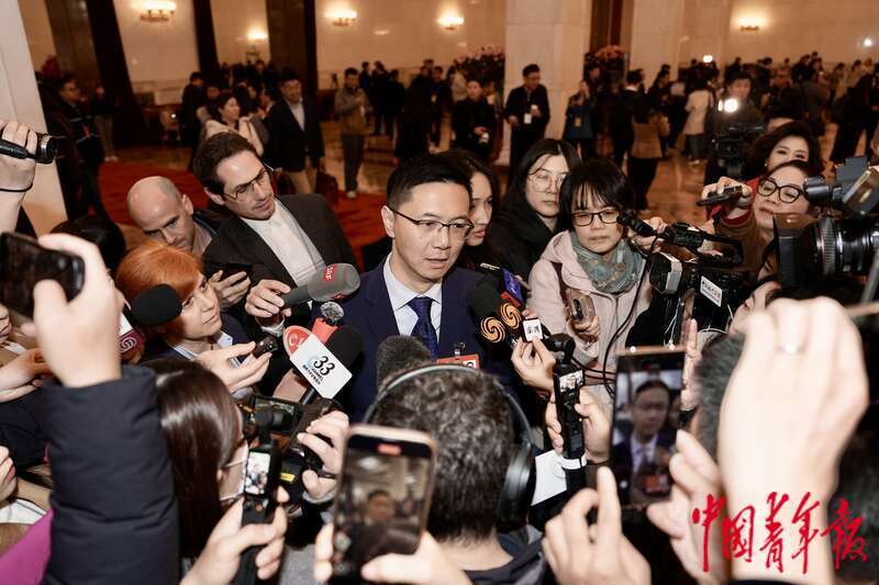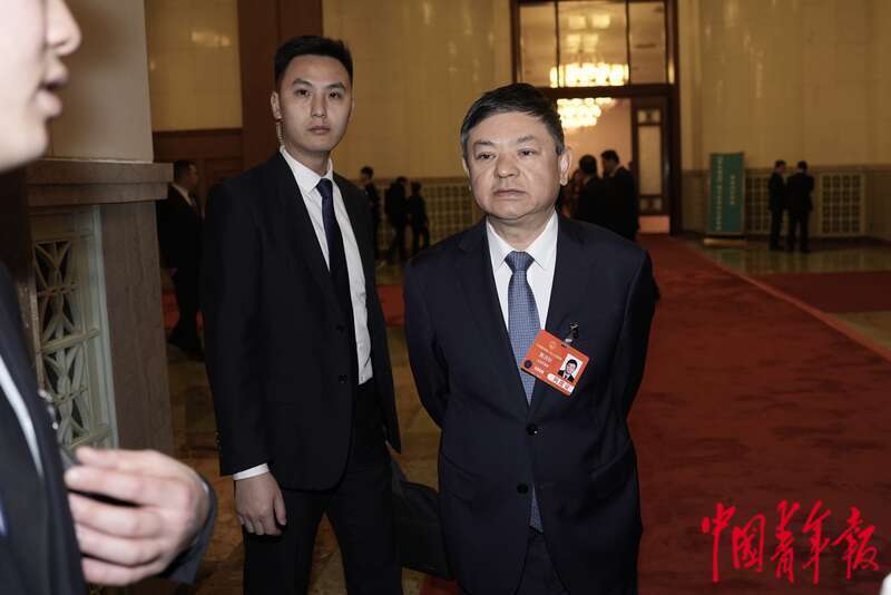 3月5日,北京,人民大会堂,第十四届全国人民代表大会第三次会议开幕会开始前,全国人大代表、清华大学国家金融研究院院长田轩接受媒体采访。中青报·中青网记者 李隽辉/摄