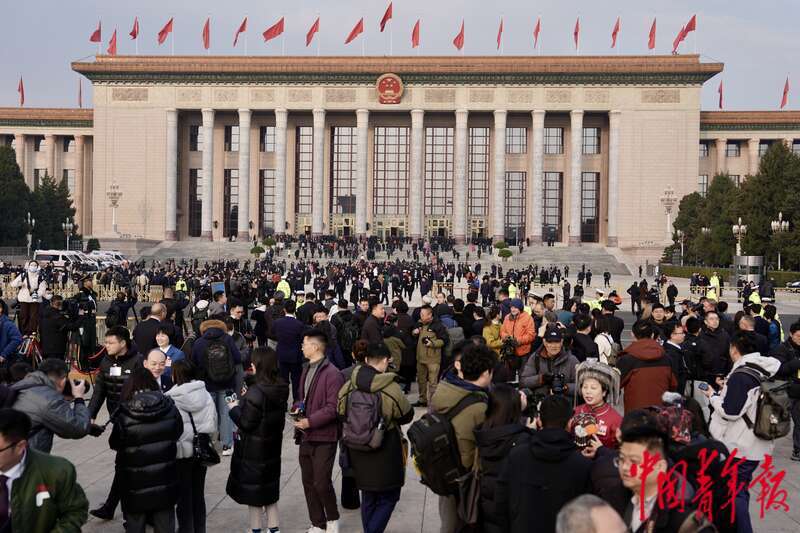 3月5日,北京,人民大会堂外,第十四届全国人民代表大会第三次会议即将开幕,代表纷纷入场。中青报·中青网记者 李隽辉/摄