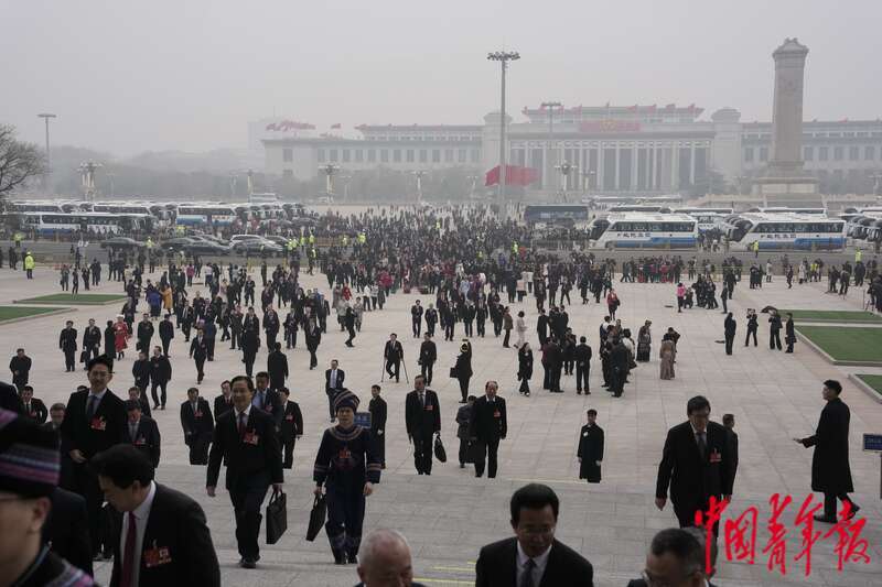 3月11日,北京,人民大会堂,十四届全国人大三次会议闭幕会开始前,代表们进入会场。中青报·中青网记者 李隽辉/摄