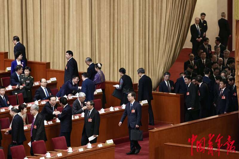 3月11日,北京,人民大会堂,十四届全国人大三次会议闭幕会结束后,代表们和旁听的部长们离场。中青报·中青网记者 李隽辉/摄