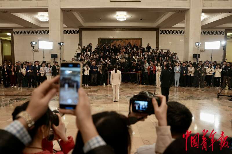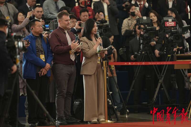 3月11日,北京,人民大会堂,十四届全国人大三次会议第三场“部长通道”集中采访活动在闭幕会后举行,吸引中外记者关注。中青报·中青网记者 李隽辉/摄