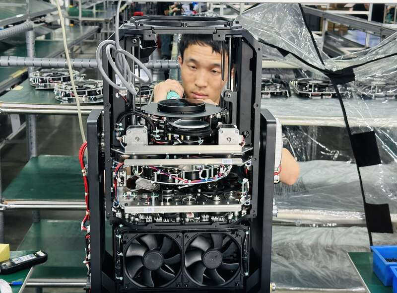 6月26日,广东中山市,在广东熠日照明科技有限公司(EK灯光)的生产车间里,产业工人正在检测设备。中青报·中青网记者 林洁/摄