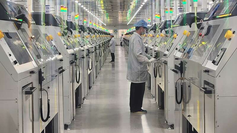 6月26日,广东省惠州市,在胜宏科技(惠州)股份有限公司的镭射钻孔车间,工作人员正忙着巡检和操作相关设备。中青报·中青网记者 魏婉/摄