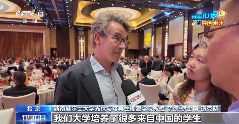 新南威尔士大学光伏与可再生能源学院教授 奈德•伊金斯-道克斯:我们大学培养了很多来自中国的学生,现在已经是许多中国大型光伏企业的首席技术官或高级研究员。我此行的目的是庆祝这一成就,并继续推动中澳之间在光伏和可再生能源领域的紧密合作。
