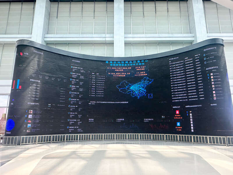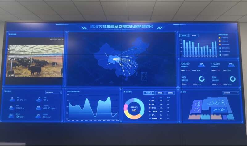 在青海农林牧商品交易中心,中青报·中青网记者感到科技感扑面而来。BI销售大数据曲面屏实时显示访客数、订单量等信息;智慧物联网大屏幕能监控牦牛肉源农牧场的温湿度和牦牛活动;扫描展销区的青海特产的外包装二维码,可获取“一物一码鉴真溯源”信息。这些数智化手段,既让消费者买得放心,也为企业产销决策提供支撑。