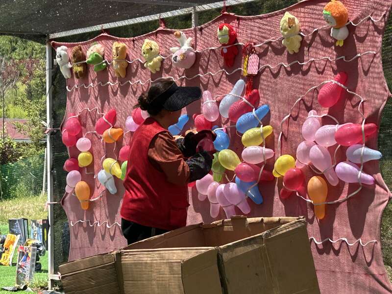 7月22日,中青报·中青网记者在边麻沟花海景区看到了刘永梅,她正在整理射击游戏要用的气球。“我4月开始在这工作,到现在已经拿了3个月工资,有9000多元。”刘永梅边收拾摊位边对记者说,景区没建起来时,她只能在家务农,不然就要出去打工,“现在有了这景区,挣钱方便多了,需要钱的话随时随地都可以挣”。