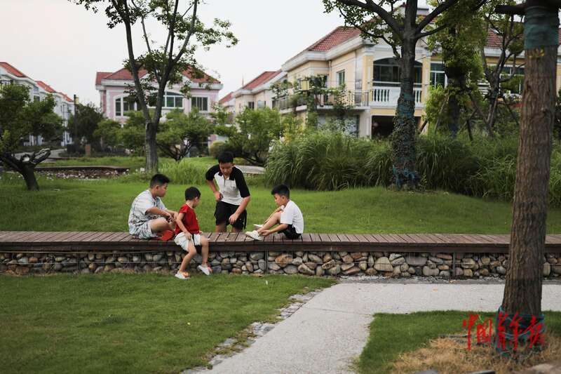 8月4日,浙江省杭州市萧山区瓜沥镇梅林村,几名小朋友在乡村公园中玩耍。中青报·中青网记者 孔斯琪/摄