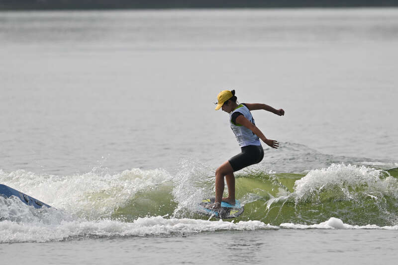中国青年报客户端成都8月9日电(中青报·中青网记者慈鑫)一艘快艇在成都东部的三岔湖上缓缓航行,艇尾的特殊装置在水中制造出层层翻滚的浪花,李梦蝶就在浪窝里踩板而行,不时做出高难度的转身或腾空动作——这是今天下午举行的成都世运会女子尾波冲浪沙板风格半决赛的比赛现场。中国选手李梦蝶虽然未能晋级决赛,但她闯入半决赛的表现已经创造了中国选手在该项目上的最佳战绩。