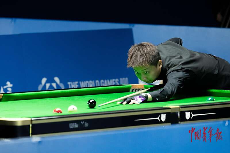 8月14日,成都世运会台球八球混合决赛,中国选手张泰艺在比赛中。汪龙华/摄